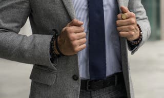 Subtiele armbanden en kettingen met hangers zijn verfijnde accenten die het beste in je look naar voren brengen zonder te overheersen. Als je kiest voor een stropdas, ga dan voor een nonchalant ontwerp of met een patroon om een balans te vinden tussen formeel en casual.