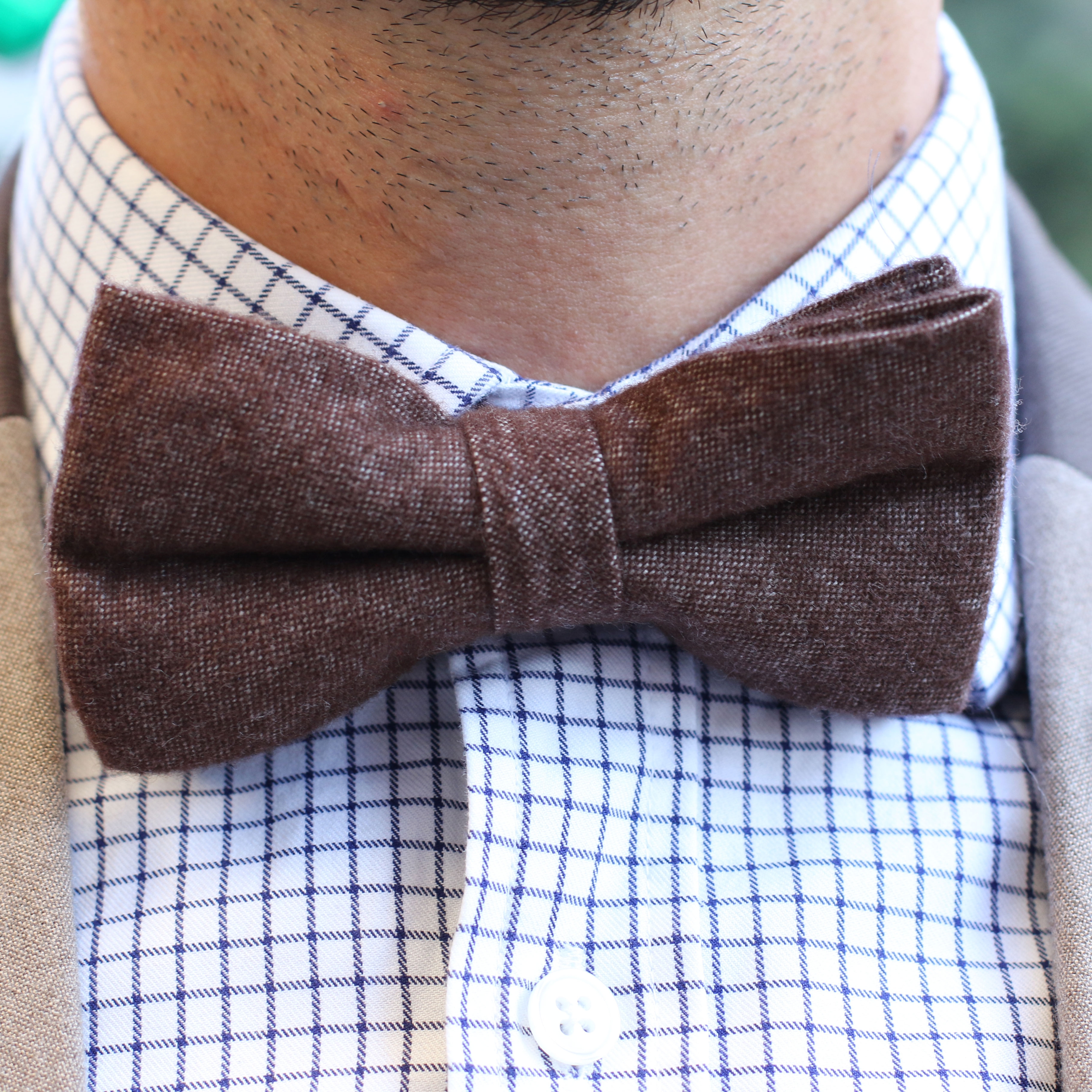 Set met donkerbruine voorgestrikte vlinderdas en pochet