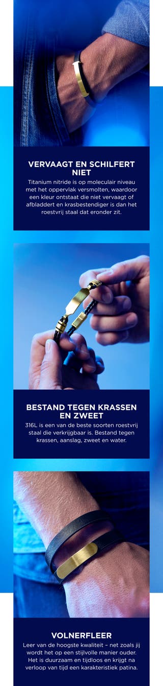 Nomen | Drievoudige Goudkleurige en Bruine Leren Geweven Bolo ID-armband