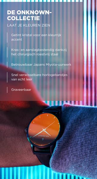 Onknown | Roestvrijstalen horloge met rood glasOnknown | Zwart Horloge van Roestvast StaalOnknown | Roestvrijstalen horloge met groen glas